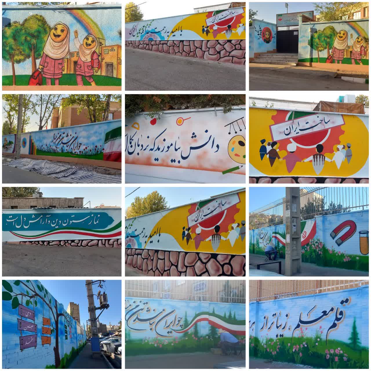 طرح دیوار نویسی و زیباسازی جداره های مدارس شهر بومهن